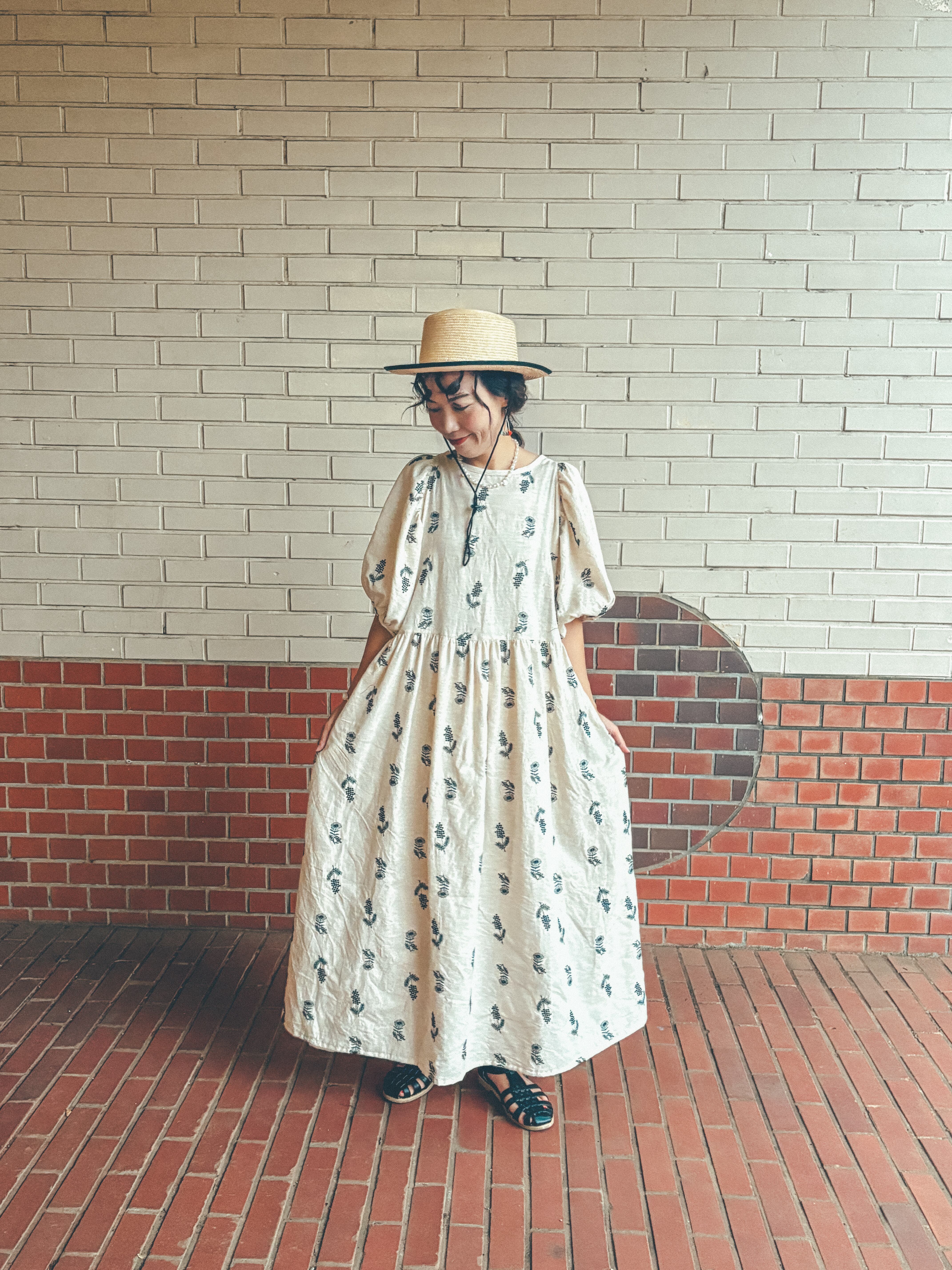 キナリ色のうえに、小花の刺繍がとってもマッチしています。